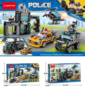 Police Building Set, Mobile Command Centre with Helicopter and Sports Car, 2-in-1 Construction Toy, Ages 6+ (Ref: 8526635106501)