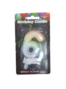 Carnival Party Glitter Birthday Number 6 Candle, Rainbow Colours ( Ref: 5060353801575)