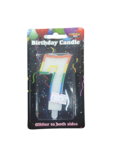 Carnival Party Rainbow Glitter Number 7 Birthday Candle, Double-Sided ( Ref: 5060353801605)