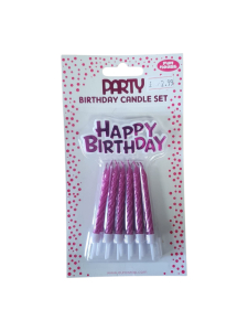 Happy Birthday Candle Set, Pink Metallic Spiral Candles with Holder, Party Decoration, 6 Pack (Ref:5033601555414)