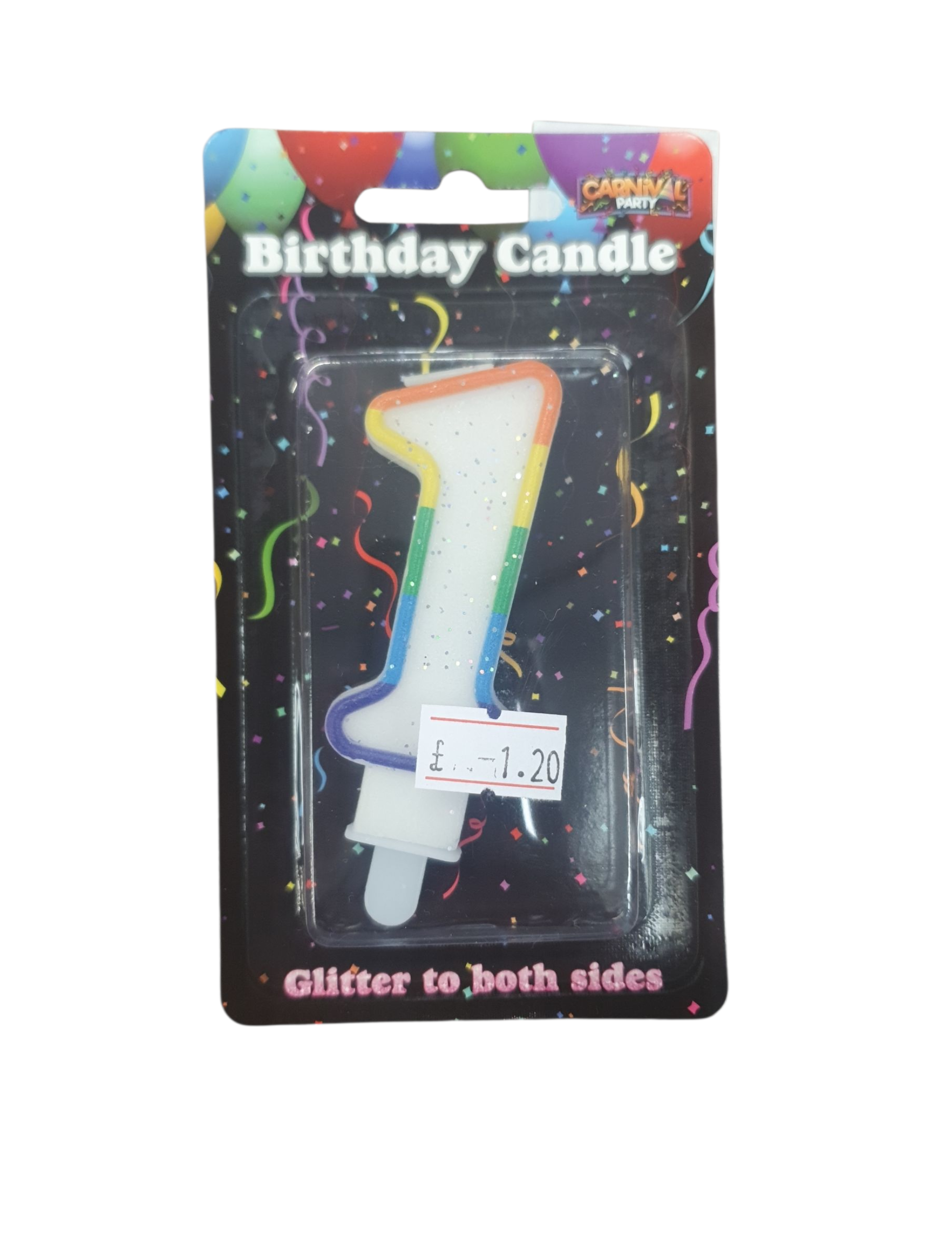 Rainbow Glitter Birthday Number 1 Candle, Double-Sided, Party Decoration (Ref: 5060353801421)