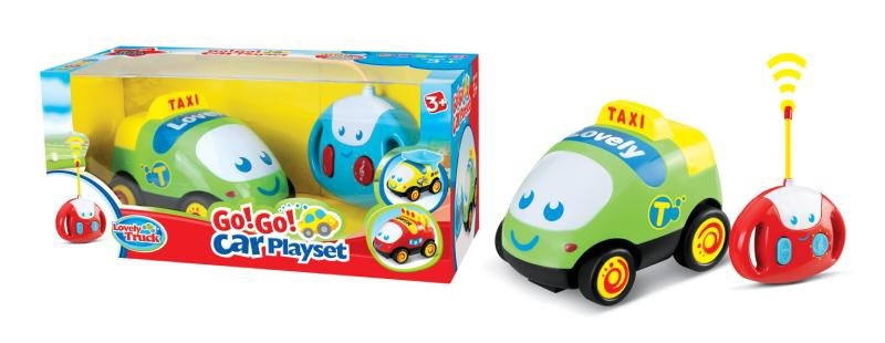 INTERACTIVE DESIGN: Smart remote-controlled taxi vehicle with wireless controller for engaging playtime and motor skill development.