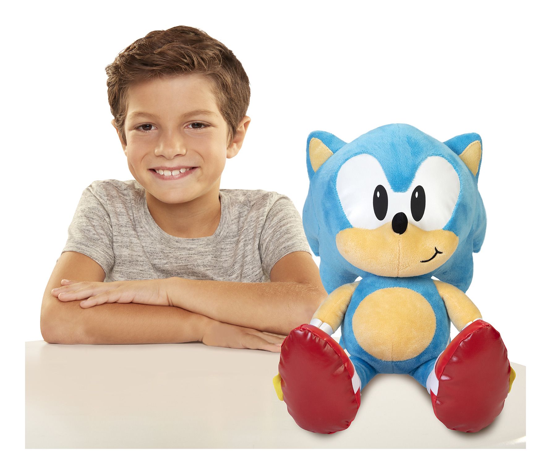AUTHENTIC DESIGN: Official Sonic the Hedgehog plush featuring iconic blue character design with signature red shoes, white gloves, and classic facial features